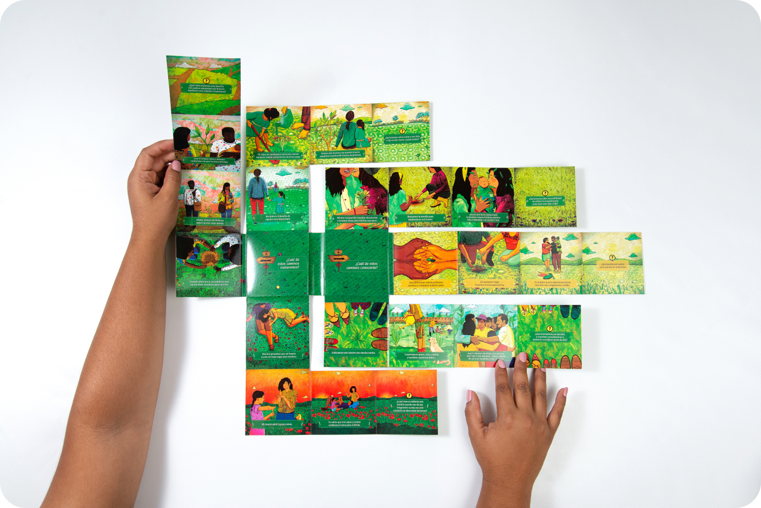 Diálogos espontáneos e historias cercanas: Muchas de las historias que se viven en nuestros territorios se reflejan en el material. Proviene de investigaciones en zonas rurales del Cauca y ha pasado por rigurosas etapas de revisión, análisis y evaluación.